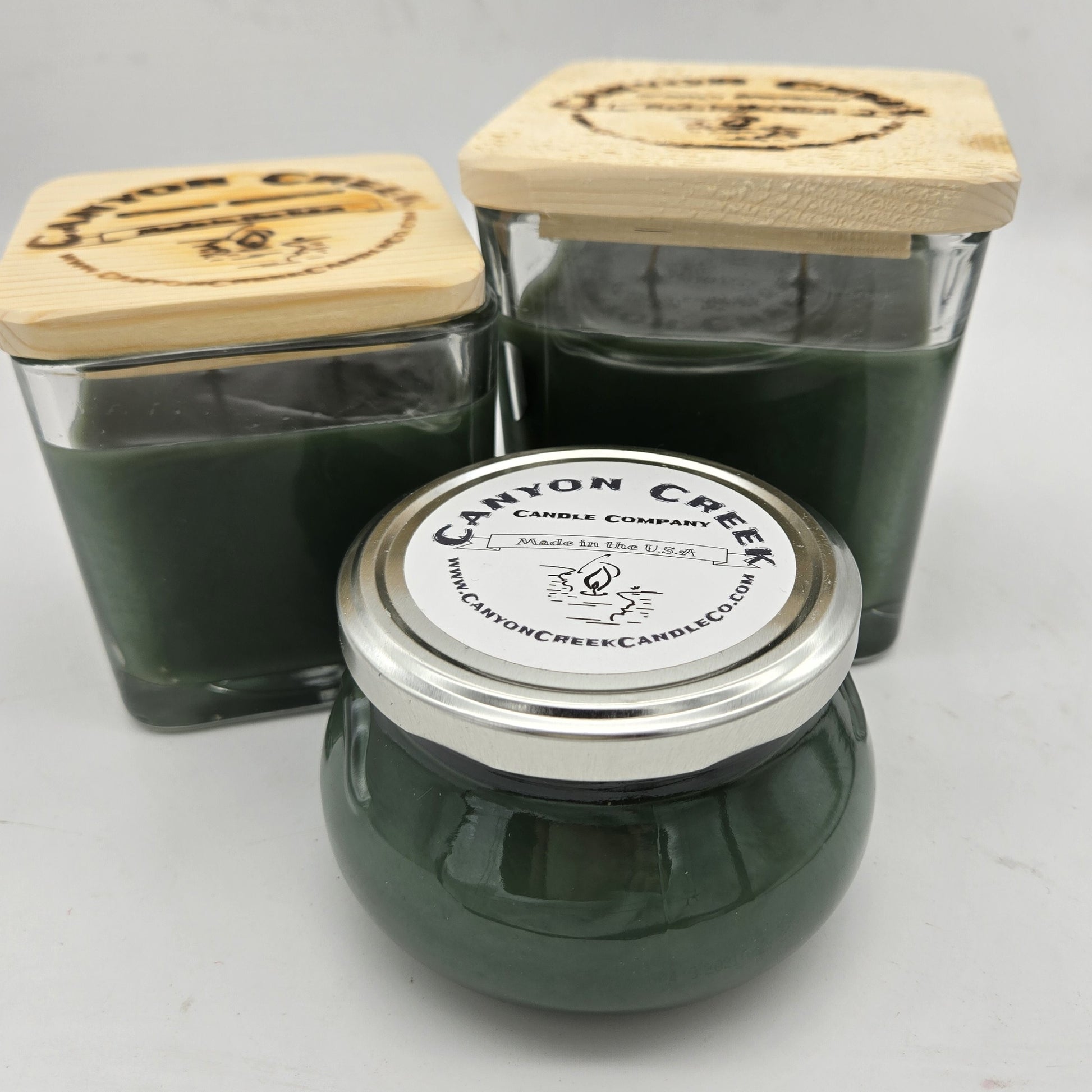 "Forest Chai" scented candle. Subtle yet sophisticated cardamom, peppercorn, ginger, anise, fir, cinnamon, and honey.