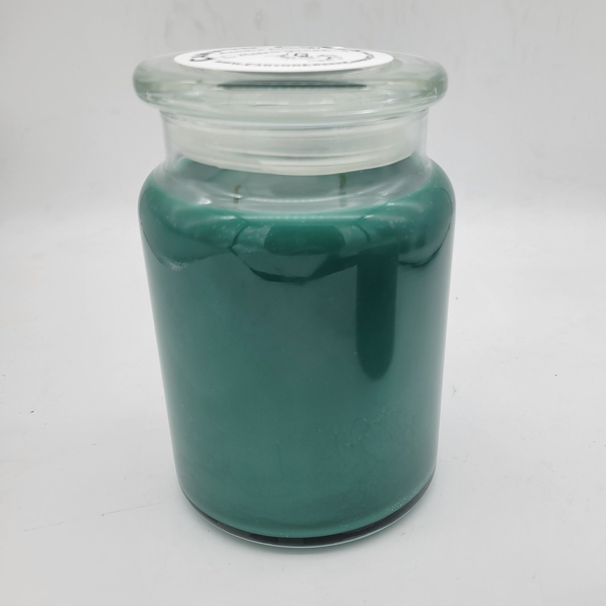 "Holiday Wreath" scented candle. Fresh cut pine tree with notes of crisp Douglas and Siberian fir needles, mossy cedarwood, soft floral musk, sandalwood and a touch of patchouli.
