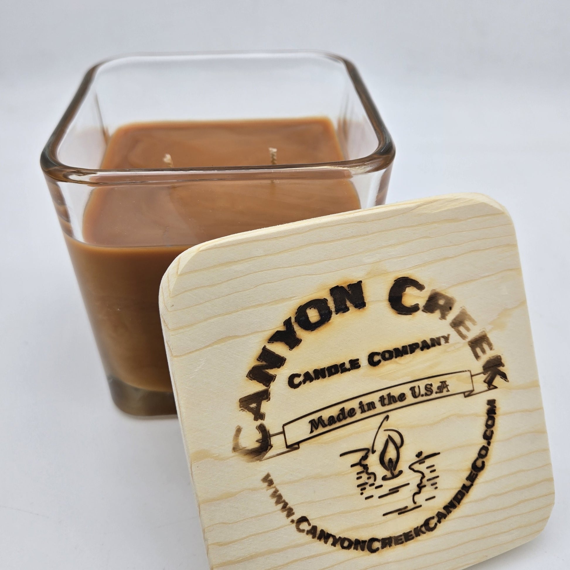 Candles are hand-poured, and wood lids are hand-stamped. Variations may occur.