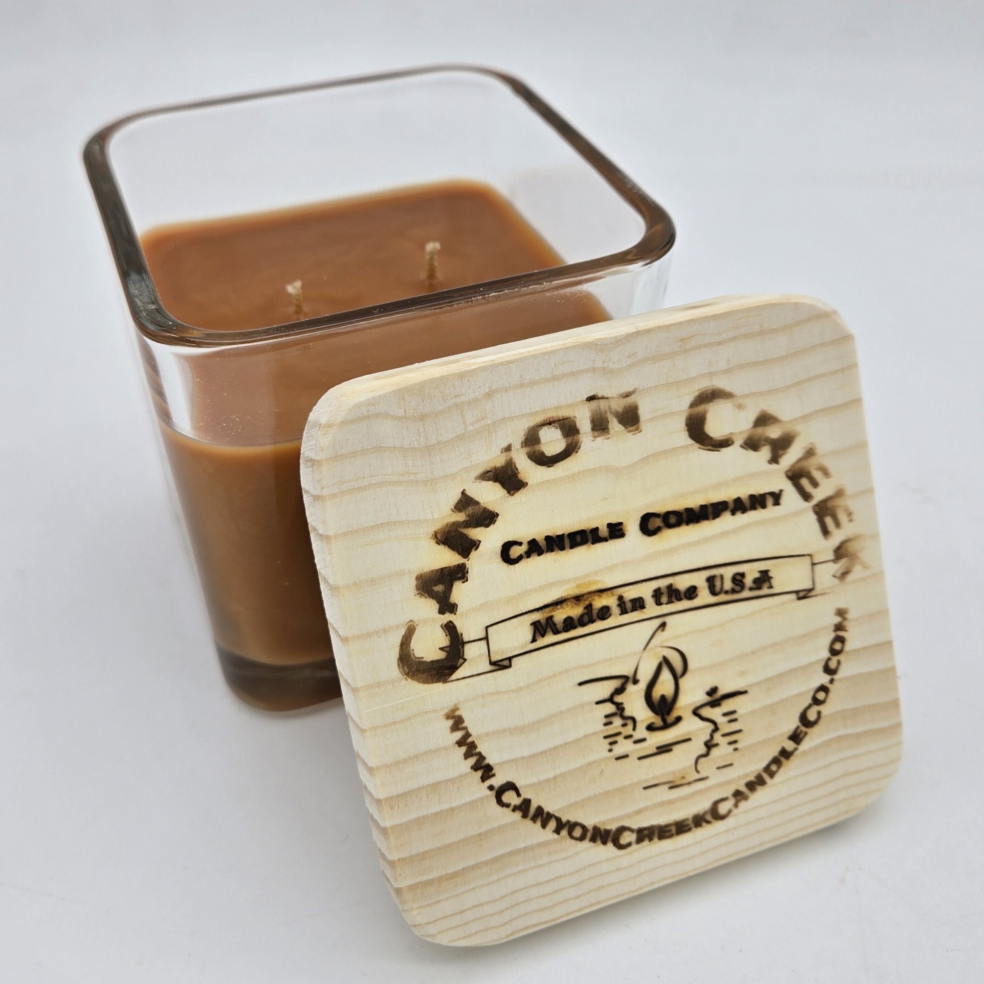 Candles are hand-poured, and wood lids are hand-stamped. Variations may occur.